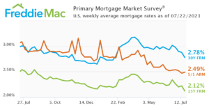 برطبق گزارش این هفته شرکت فردی مک (Freddie Mac) مورخ (July 22, 2021)، نگرانی در مورد نوع دلتای ویروس کرونا و سیر کلی شیوع بیماری، بدون شک بر رشد اقتصادی تأثیر می گذارد. در حالی که اقتصاد به اصلاح خود ادامه می دهد، بازده خزانه داری کاهش یافته و نرخ بهره وام مسکن نیز از آن پیروی می کند.